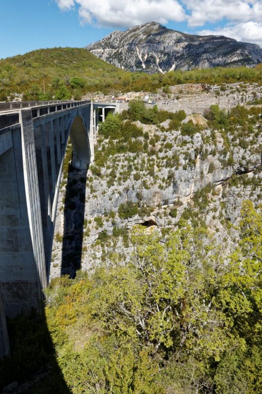 Le village de Trigance est dominé par son château médiéval, reconstruit dans les années 1960 et transformé en hôtel. Au départ du village, un sentier balisé GR49 grimpe vers l'ouest et au bout d'une heure débouche sur le plateau d'Entreverges encaissé entre trois montagnes : la crête d'Armevieille, le Breis et le Biach. C'est par les sommets de ces deux derniers que passe la frontière entre le Var et les Alpes de Haute Provence. Le plateau lui-même n'est plus varois. Un large sentier le traverse et descend ensuite vers les ruines du hameau d'Encastel avant de se terminer au belvédère de Rancoumas qui surplombe le canyon du Verdon. Face à nous s'étirent les impressionnantes falaises de l'Escalès. 200m de paroi creusée de cavités naturelles et admirée par les escaladeurs internationaux. Au-dessus de nos têtes planent majestueusement des vautours. Et sous nos pieds on entend gronder les eaux turquoises du Verdon. On aperçoit aussi le très touristiquement surpeuplé sentier Martel, descendant depuis Rougon et passant sous les falaises.
