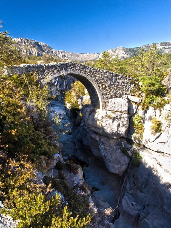 Au pied du village coule un petit torrent (lorsqu'il n'est pas à sec), le Jabron. Il se jette dans le Verdon non loin du pont de Carajuan au nord. Mais avant cela, il a eu l'égoïste fierté lui aussi de se creuser ses propres gorges. Certes, on ne peut les comparer à l’œuvre mégalomaniaque du Verdon, mais elles méritent que l'on s'y intéresse car elles sont étonnantes. Le Jabron s'est taillé un étroit canyon dans le calcaire, d'une profondeur variant de 1 à 20 mètres et parfois pas plus large que la grandeur d'un homme. Un frêle pont de pierres enjambe ce défilé d'albâtre, c'est le pont de Sautet. S'il semble très ancien, d'architecture romane, il pourrait n'être qu'une reconstruction d'un ouvrage plus ancien qui n'aurait pas survécu aux terribles crues du torrent qui emportèrent tous les ponts au XVIIIè s. et isolèrent le village du reste de la région.