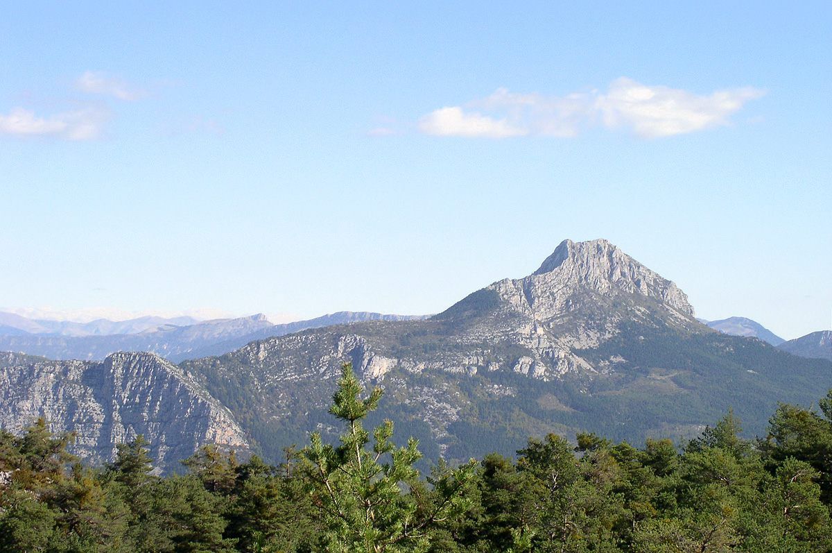 Mais la plus impressionnante de toutes ces hauteurs reste le Robion. Cet immense rocher gris qui s'élance vers le ciel culmine à 1660m. De son sommet, accessible après une longue montée (au départ de Castellane), on surplombe le Verdon 1000m plus bas et on fait face aux Cadières de Brandis. A ses pieds, on aperçoit aussi le château templier de Valcros et le hameau de Robion. Et par-dessus les collines l'on côtoye les autres géants locaux : le Teillon (1895m) et le Mourre de Chanier (1930m). Si sa masse peut faire peur, elle abrite cependant la petite chapelle troglodytique dédiée à Saint Trophime, sise à la faveur d'une cavité dans la falaise.